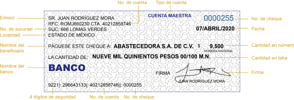 Cerciórate: el importe escrito, siempre debe de contener la palabra pesos y centavos/100.